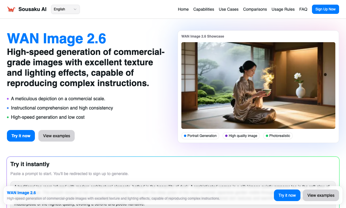 Generating high-quality visual assets is a core requirement for modern digital campaigns. WAN Image 2.6 offers a highly capable solution for producing commercial-grade static images. As the latest iteration in Alibaba’s Wan series, this model excels at delivering high-fidelity visuals, complex prompt understanding, and precise texture realism. These characteristics make it highly compatible with the demands of marketing design.