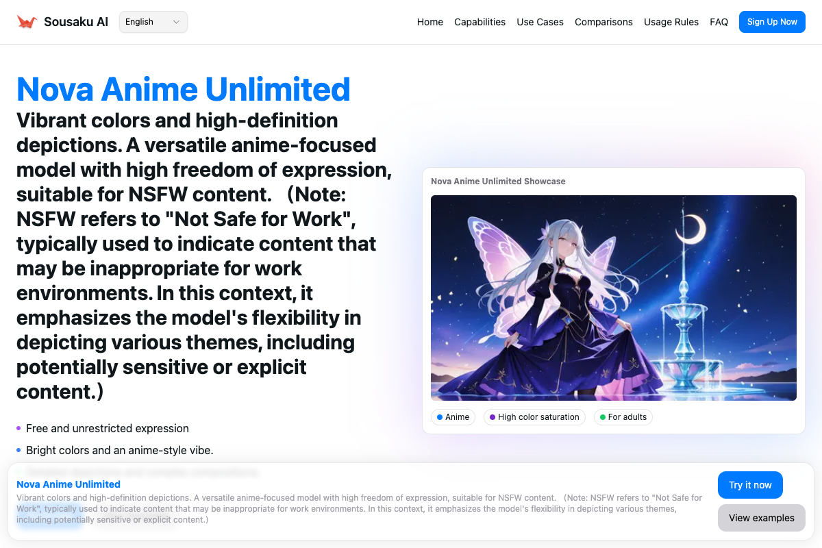 Nova Anime Unlimited operates as an enhanced text-to-image model with specific strengths that align well with comic production. It handles complex prompts with high responsiveness, allowing creators to dictate precise scene compositions.