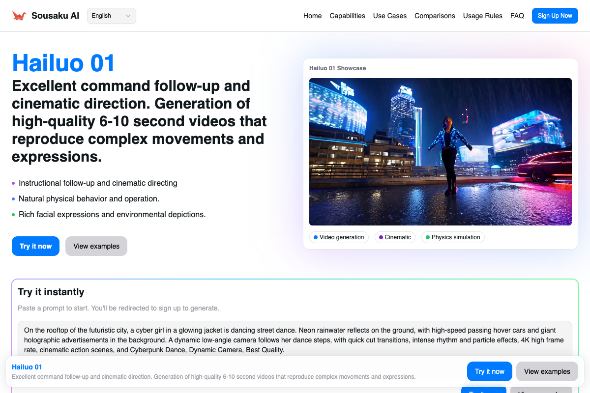 Hailuo 01 is also known for its strong prompt adherence. It does not require overly complex technical jargon to understand regional features or specific cinematic lighting requests, making it highly responsive to direct, descriptive language.