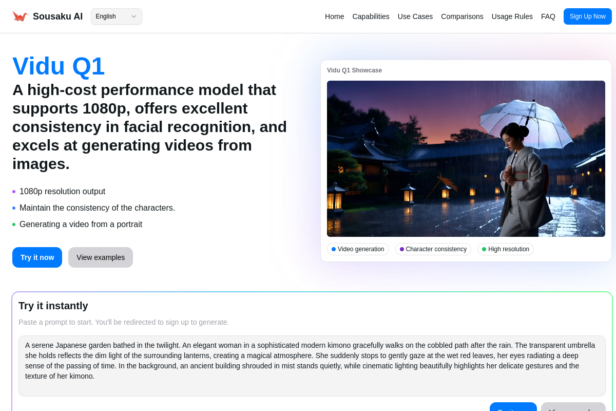 Visit Sousaku.AI to access Vidu Q1 and start generating today.